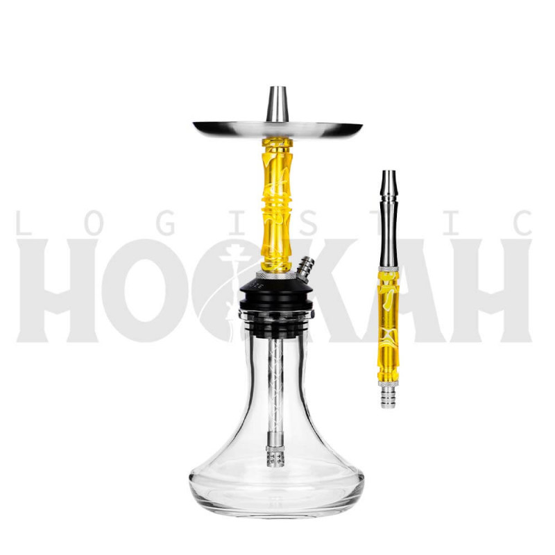 Esta shisha está fabricada en acero inoxidable con una cámara en poliacetal. Entre sus características técnicas, destaca que presenta cuatro formas de purga diferentes: