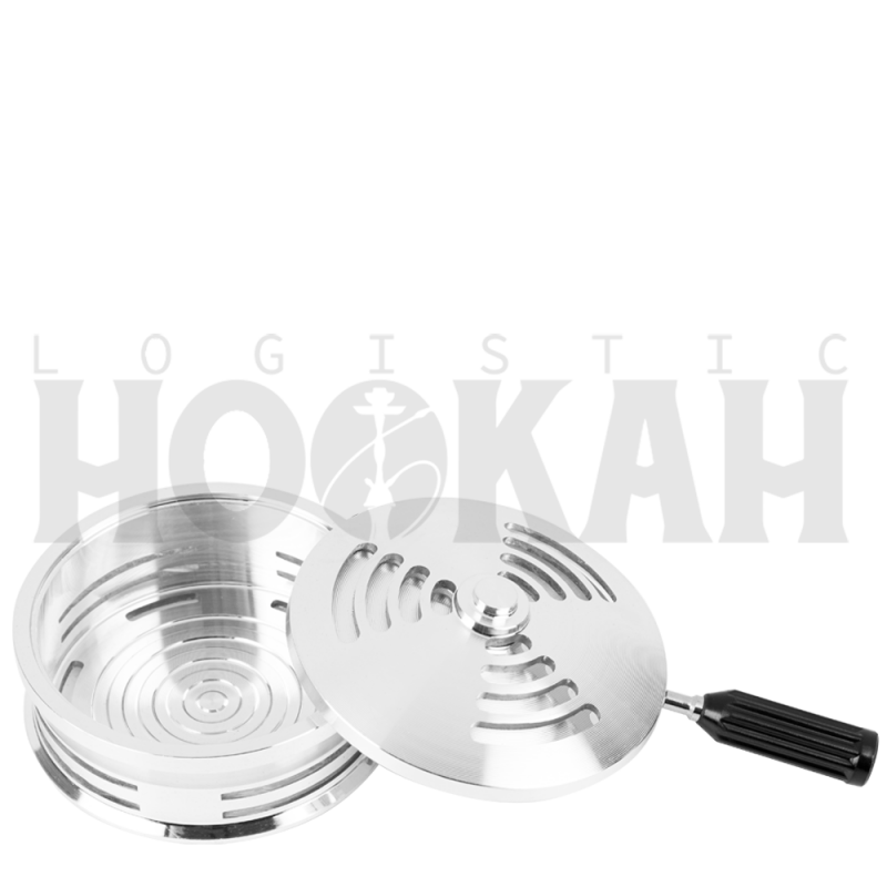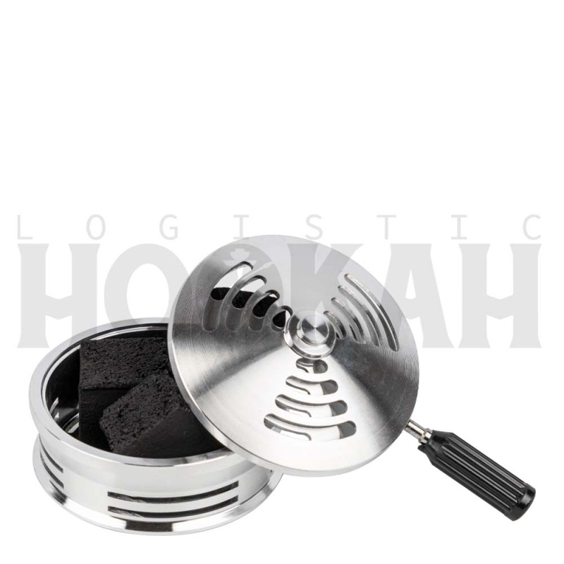 Está fabricado en aluminio y tiene un acabado perfecto, compuesto por tres piezas separadas: la parte inferior, que permite depositar los carbones para su uso; la parte superior, que es una tapa para cubrir el calor y gestionar su duración; y un mango de silicona, que sirve para que no tengas que coger la pieza caliente durante su uso.
