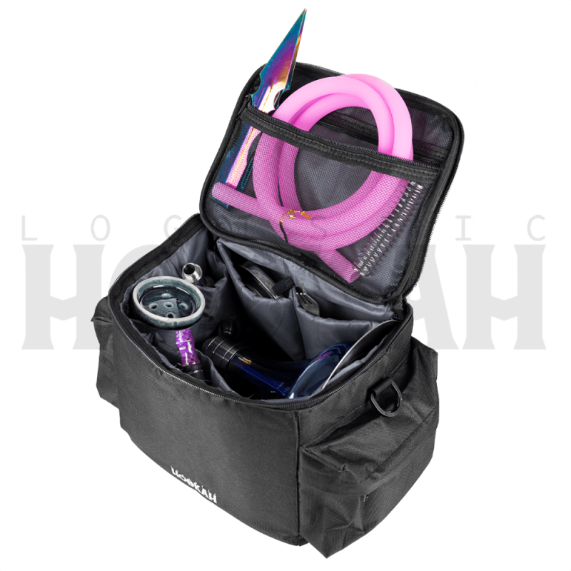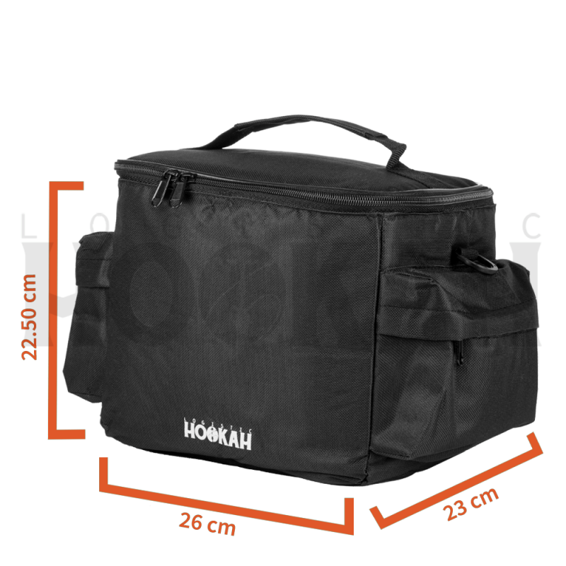 Está pensada para transportar cachimbas de tamaño pequeño y todos sus accesorios. Es ideal para cachimbas como: Oduman, Mr. Shisha Rocket 2.0, Aladin MVP 360, Embery Mini Mono, Onyx Hookah, WD Hookah y muchas más. Las dimensiones de esta mochila son: